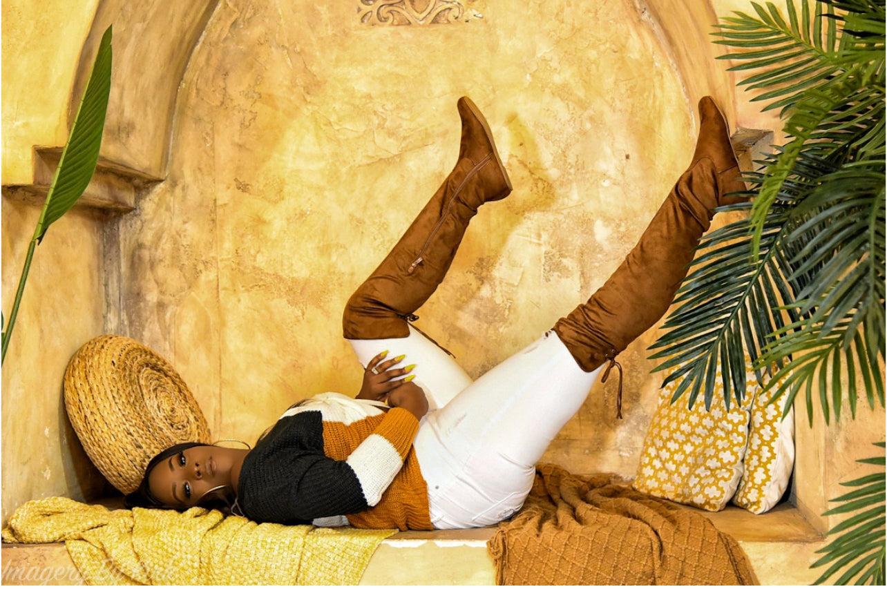 Chestnut knee high boots fits true to size .